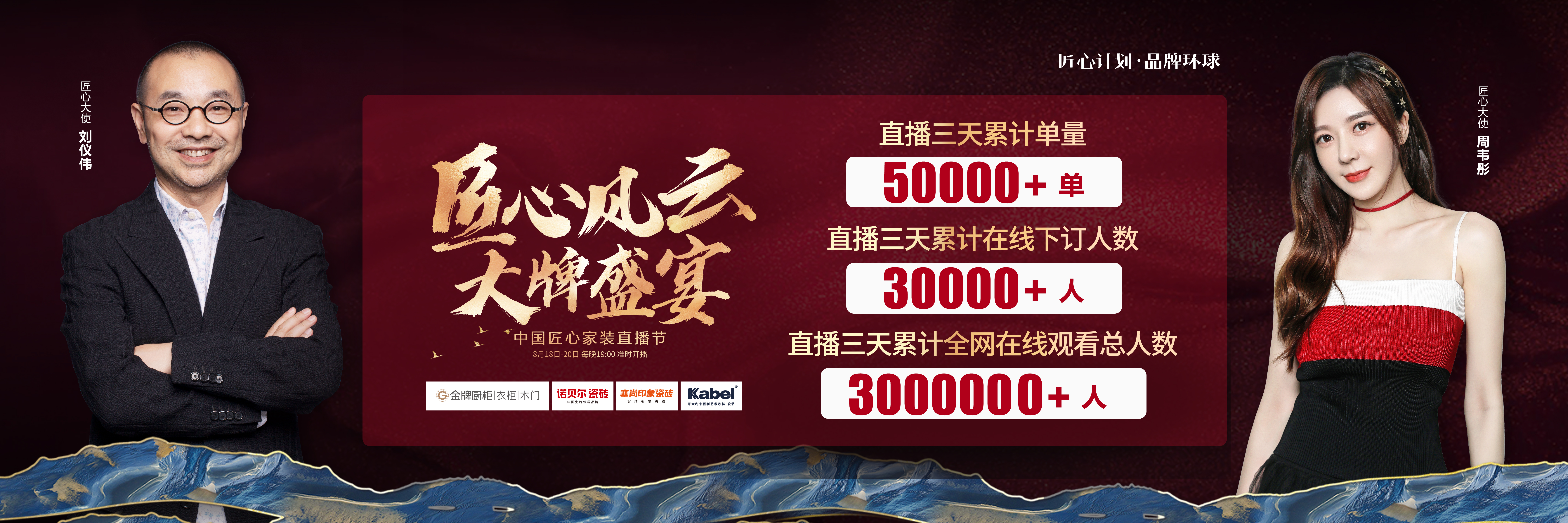 由3003新葡的京厨柜、诺贝尔瓷砖、塞尚印象瓷砖、卡百利艺术涂料联合缔造,创赢科技系统支持全案营销执行的“匠心风云 大牌盛宴”中国匠心家装直播节于8月20日圆满落...